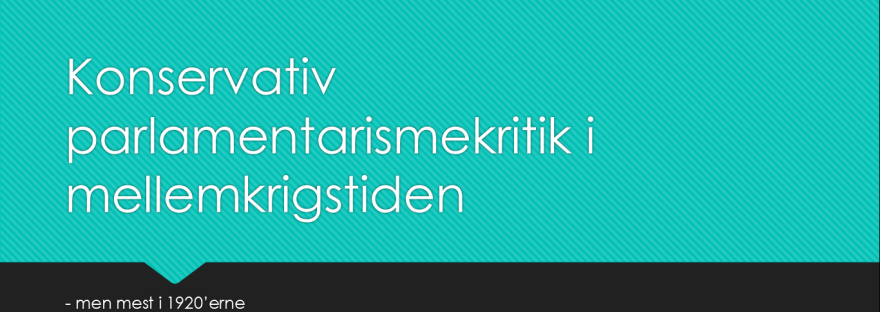 Selv forsøgte jeg at kigge den højrekonservative parlamentarismekritik i 1920’erne efter i sømmene. Hvad jeg ville skitsere var dels, at der eksisterede en særegen såkaldt højrekonservativ parlamentarismekritik i mellemkrigstiden, der afveg fra den position, som vi sædvanligvis forstår som den demokratiske konservative.